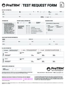 Home | News & Resources | Resources Resources Healthcare Provider Form PreTRM Test Requisition Form Download Healthcare Provider Resource PreTRM Test Report Read More Healthcare Provider Resource PreTRM Test Report Update Download Healthcare Provider Resource PreTRM Test for Risk Management Download Healthcare Provider Resource PreTRM Tech Specs Download Healthcare Provider Resource PreTRM Blood Sample Collection, Processing and Shipping Download Healthcare Provider Resource PreTRM Ambient Sample Collection, Processing, and Shipping Download Healthcare Provider Resource PreTRM Frozen Sample Collection, Processing, and Shipping Download Healthcare Provider Form New York State PreTRM Test Requisition Form Download Healthcare Provider Resource PreTRM Sample Report Higher Risk Download Healthcare Provider Resource PreTRM Sample Report Not Higher Risk Download Patient Resource PreTRM Patient Blood Kit Instructions Read More Online Ordering Provider Portal Login Healthcare Provider Resource PeTRM Report Update Key Download